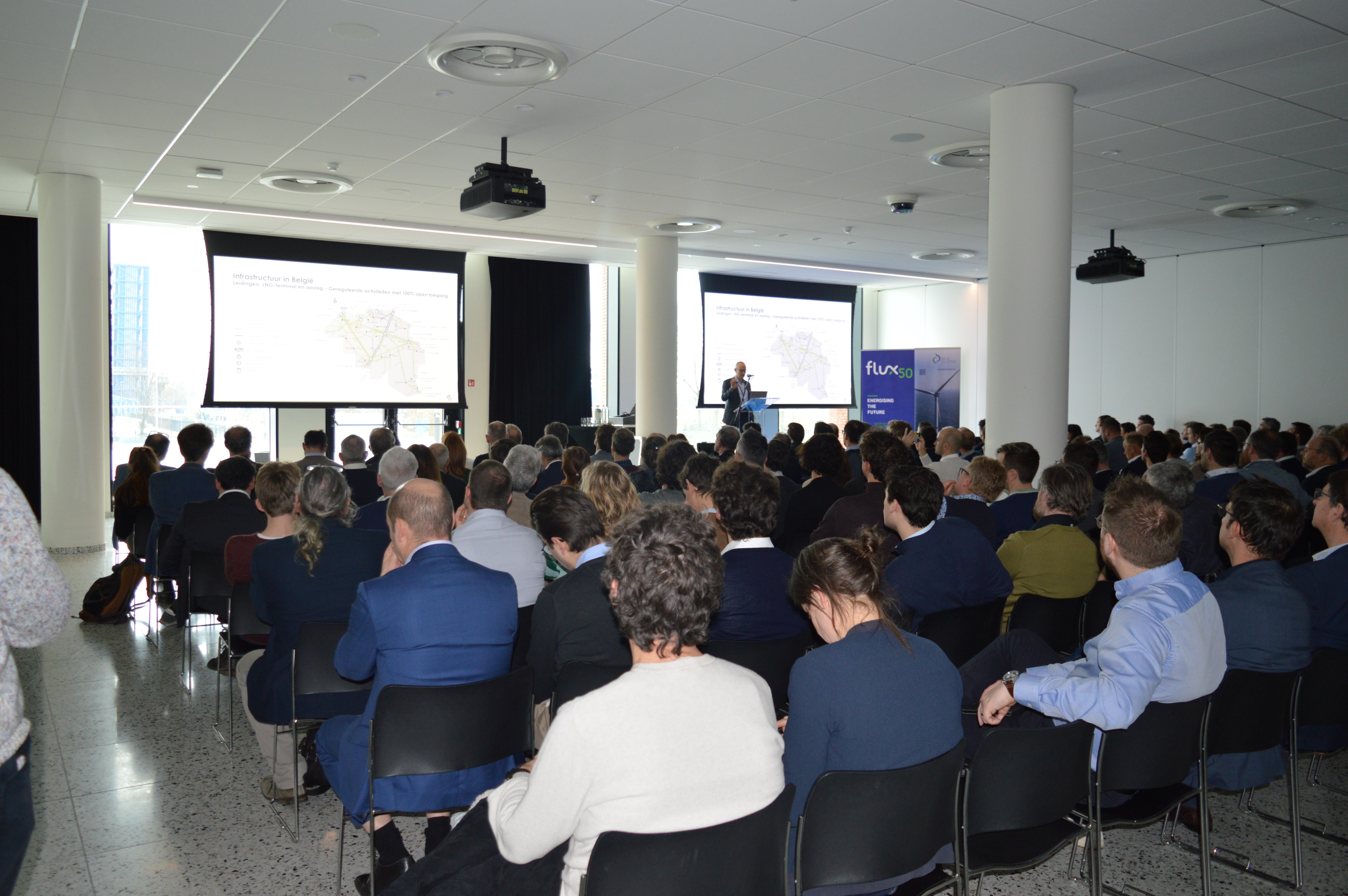 Op donderdag 16/02 cruisden zo'n 200 deelnemers door Zeebrugge. De Blauwe Cluster en Flux50 sloegen de handen in mekaar voor een rijkelijk gevuld programma. Centraal stond het grootschalig energiesysteem van morgen en zijn stakeholders waarin een belangrijke rol is weggelegd voor de havens als energiehubs.